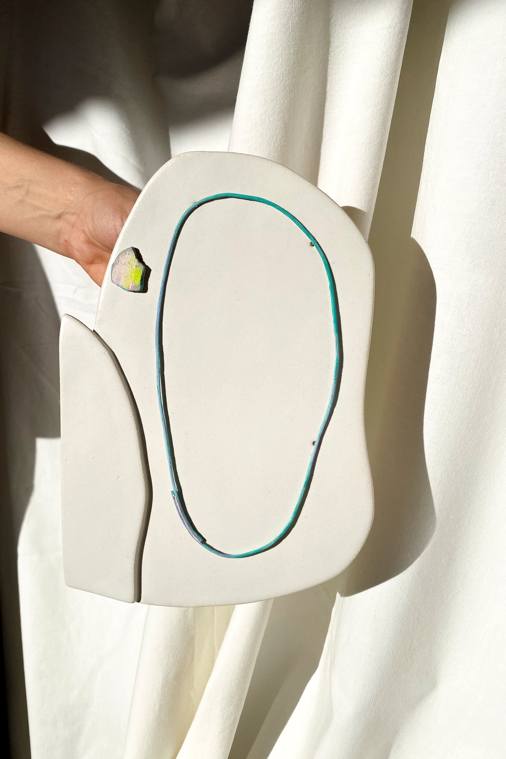 Cerámica esmaltada de alta temperatura, latón y cemento con pátinas de acrílico y pigmentos en varios colores.